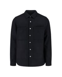 Rick Owens Men's Blue Minimalist Jacket With High Stand Collar And Boxy Silhouette