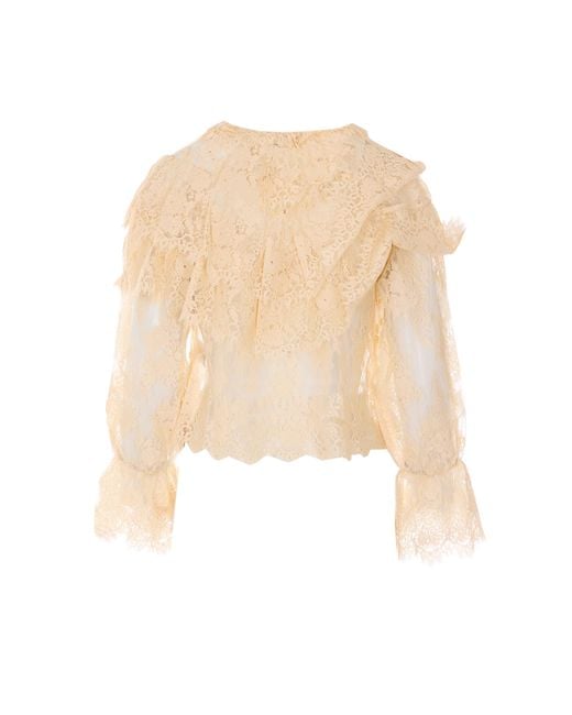 Rixo vintage cream Faryn top vintage, lace on collar, ruffled, transaprent effect, V-neck. . Composition 52polyamide, 48 cotton Color: white