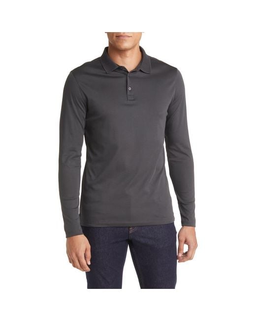 A honeycomb-knit collar adds a pop of texture to a long-sleeve jersey polo crafted for softness and versatility from solid pima cotton. Color: gray