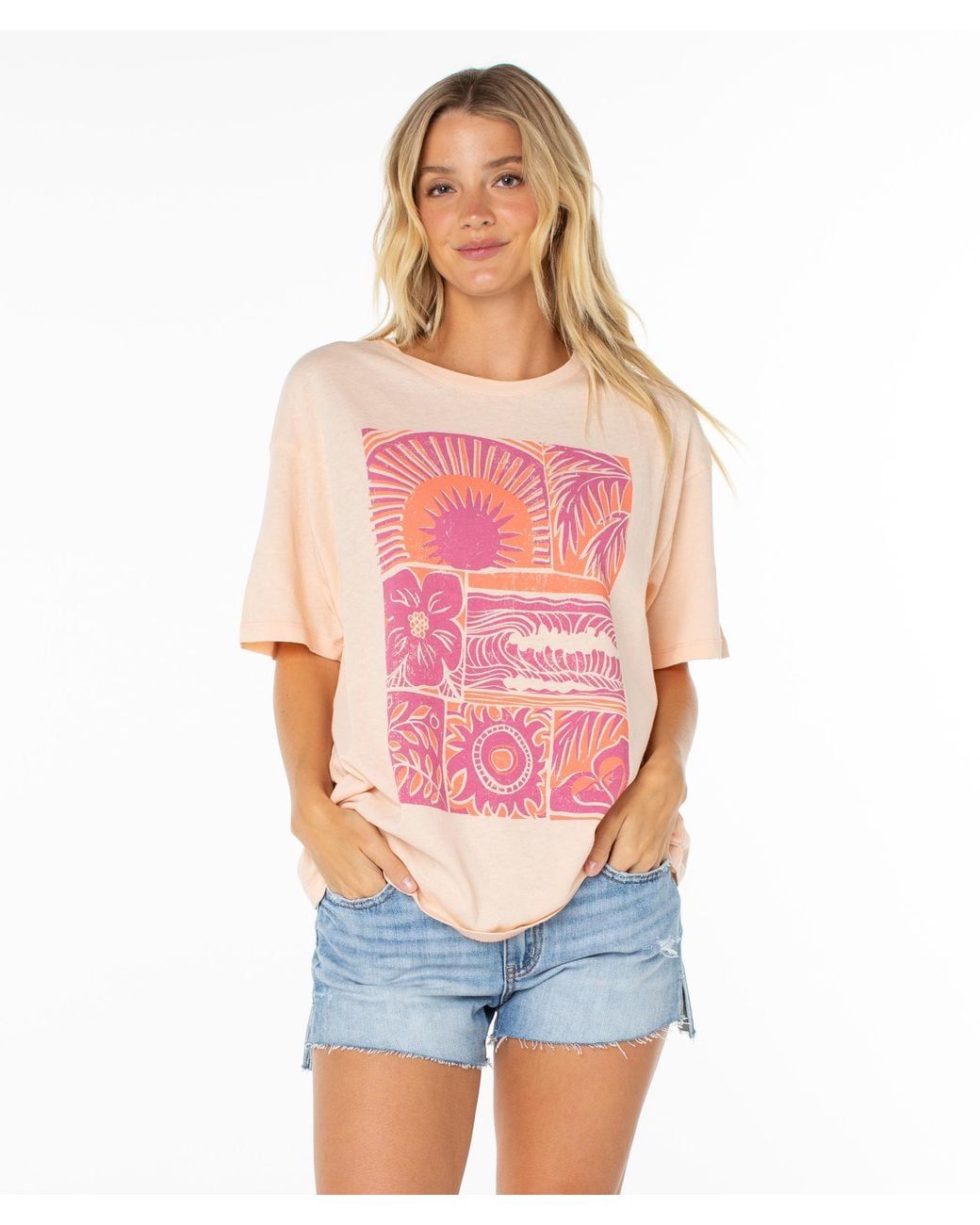 Breezy and lightweight, this top is an essential throw-on-and-go oversized tee. With a relaxed drop shoulder and a playful graphic, it's everything you need for easy, all-day style. Color: pink
