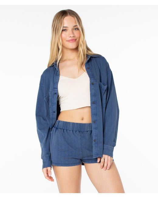 Grab the Sandpiper Button Up as an easy coverup for any of your summer plans. Whether you layer it with a favorite tank top or a bikini, this top is the perfect pick for warm weather layering. Color: blue