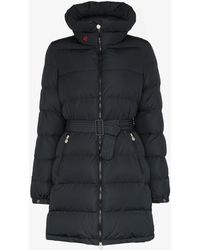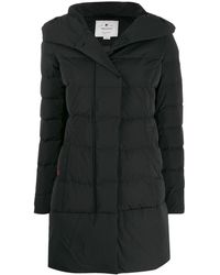 Black feather down racoon fur trim hooded jacket from RRD featuring a front zip fastening, a quilted effect, side pockets and a straight hem. Material:Feather Down/Racoon Fur/Spandex/Elastane/Polyamide.