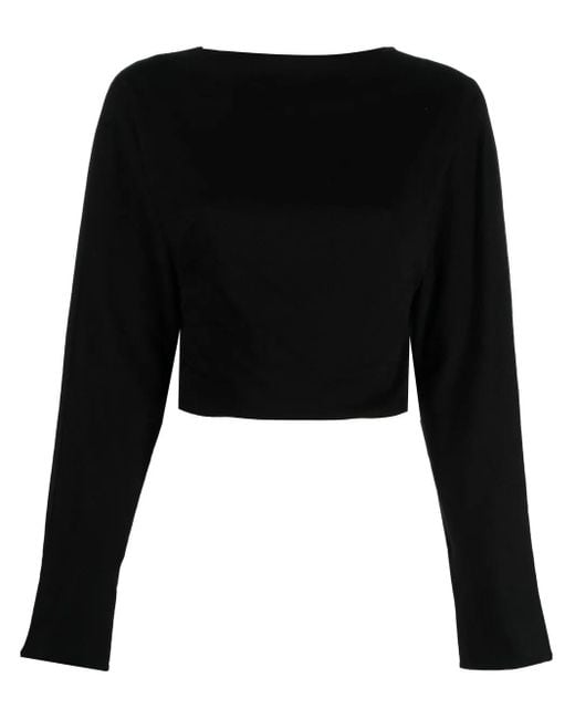 Women's Black V-Neck Long-Sleeve Cropped Top