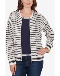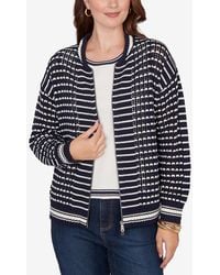 Ruby Rd. Women's Blue Plus Size Mesh Stitch Zip Sweater Jacket