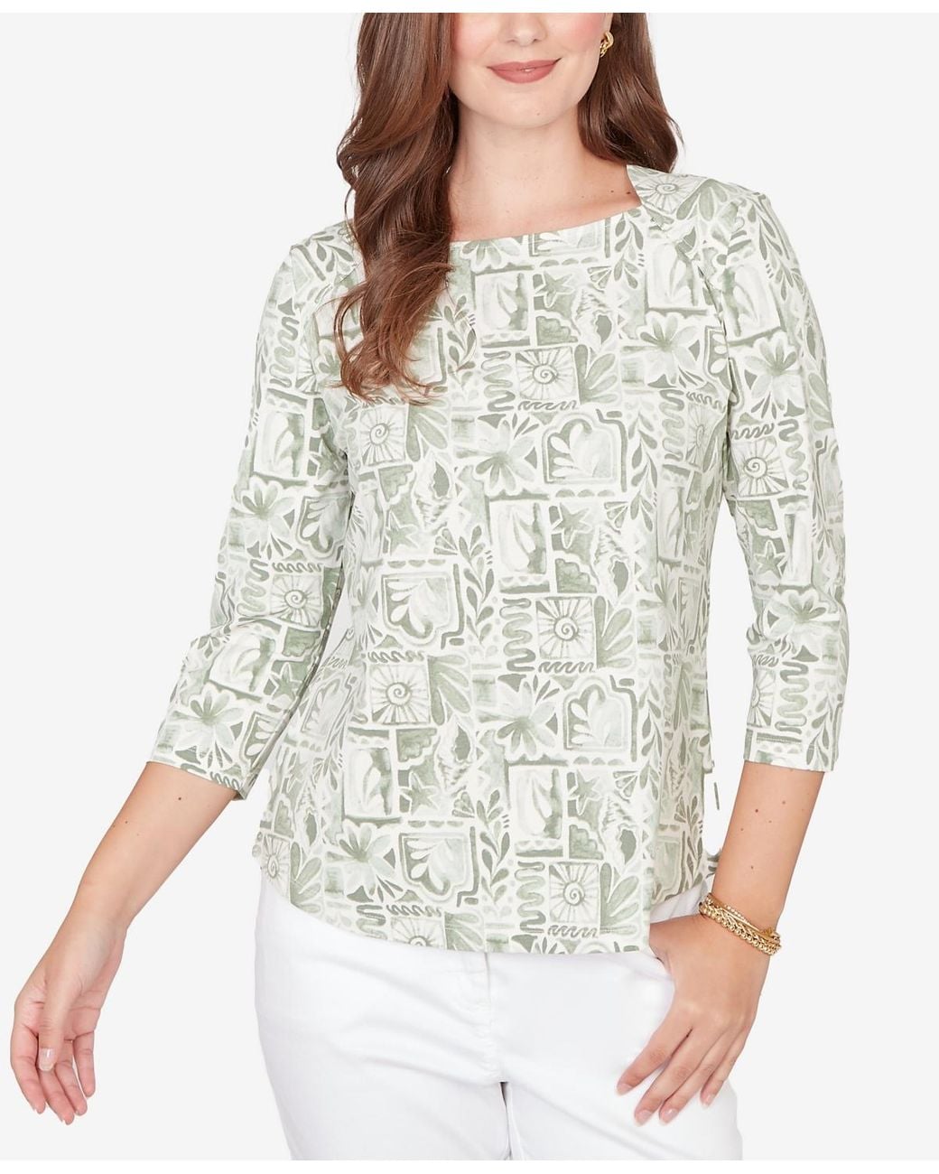 Women's Gray Plus Size Seashell Patchwork Knit Top