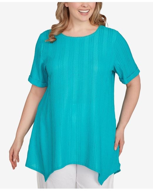 Women's Blue Plus Size Solid Crinkle Knit Top