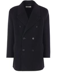 Saint Laurent Men's Black Double Breasted Cape Coat