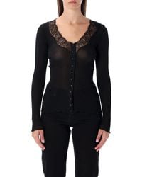 Saint Laurent Women's Black Silk And Ribbed Lace Cardigan
