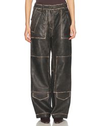 Go to SSENSESlim-fit grained lambskin pants. · Paneled construction · Lace-up detailing at front · Zip closure at side · Unlined Supplier color: Burgundy