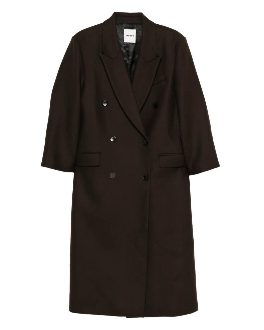 Brown double-breasted fastening peak lapels long sleeves flap pockets straight hem rear vent oversize fit Size: 38. Gender: Female. Material:Wool/Polyamide/Viscose/Polyester/Cotton. Color: black
