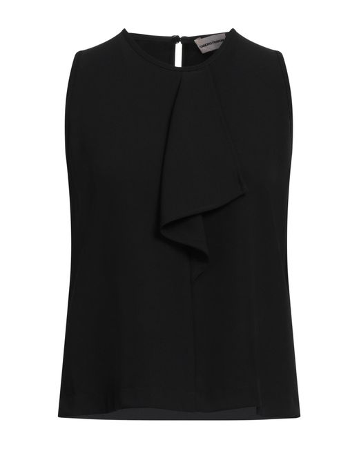 Ruched top, crepe, solid color, no appliqués, crewneck, sleeveless, 1 button, stretch, dry clean, do not bleach, do not tumble dry , Color: Black , Size: S