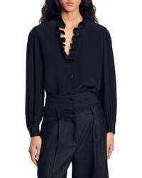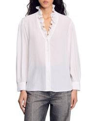 Sandro Women's Brown Floaty Patterned Silk Shirt