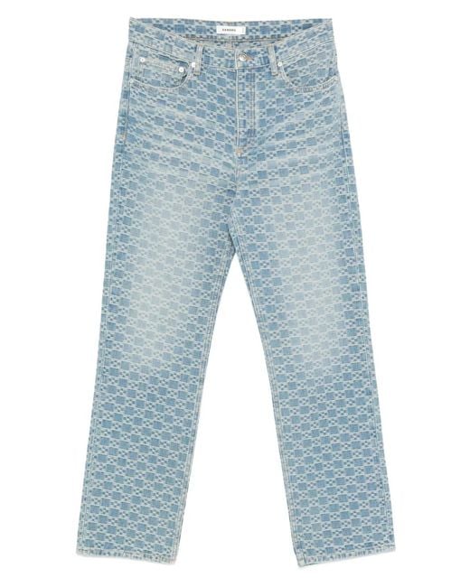 Square-Pattern Straight-Leg Denim Jeans - Blue