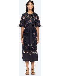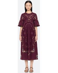 Go to Sea New YorkThe Edwina short sleeve dress features cross stitch embroidery throughout, short puff sleeves, lace trim detailing and ties at back. Details: Self-70% cotton, 30% linen. Lining-100% cotton. Invisible side zipper. Ties at back.