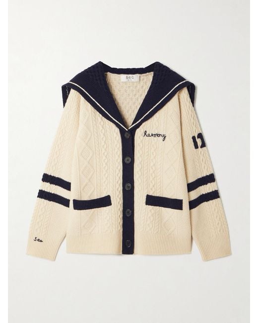 - Maren Embroidered Cable-Knit Wool Cardigan