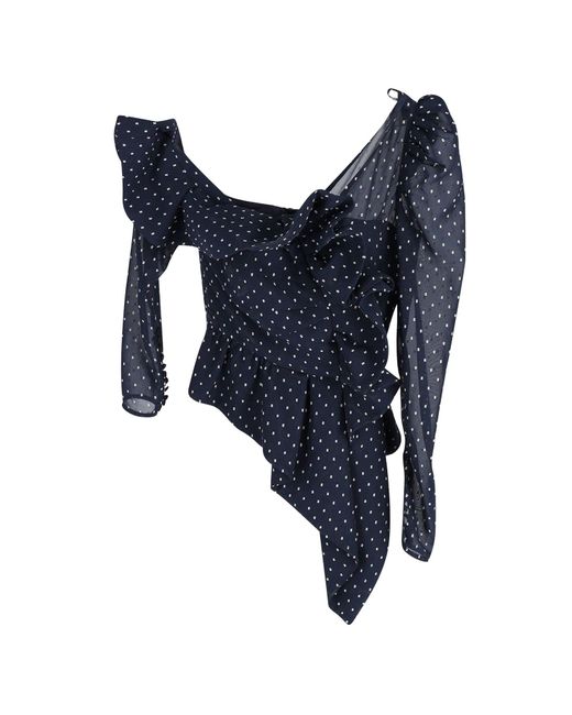 Women's Blue One-Shoulder Ruffled Swiss-Dot Chiffon Top