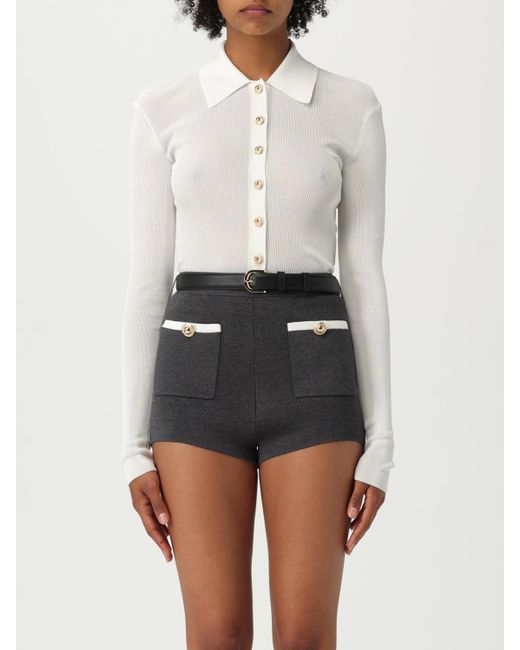 Women's White Ribbed Knit Collared Button-Up Top With Long Sleeves For Stylish Comfort