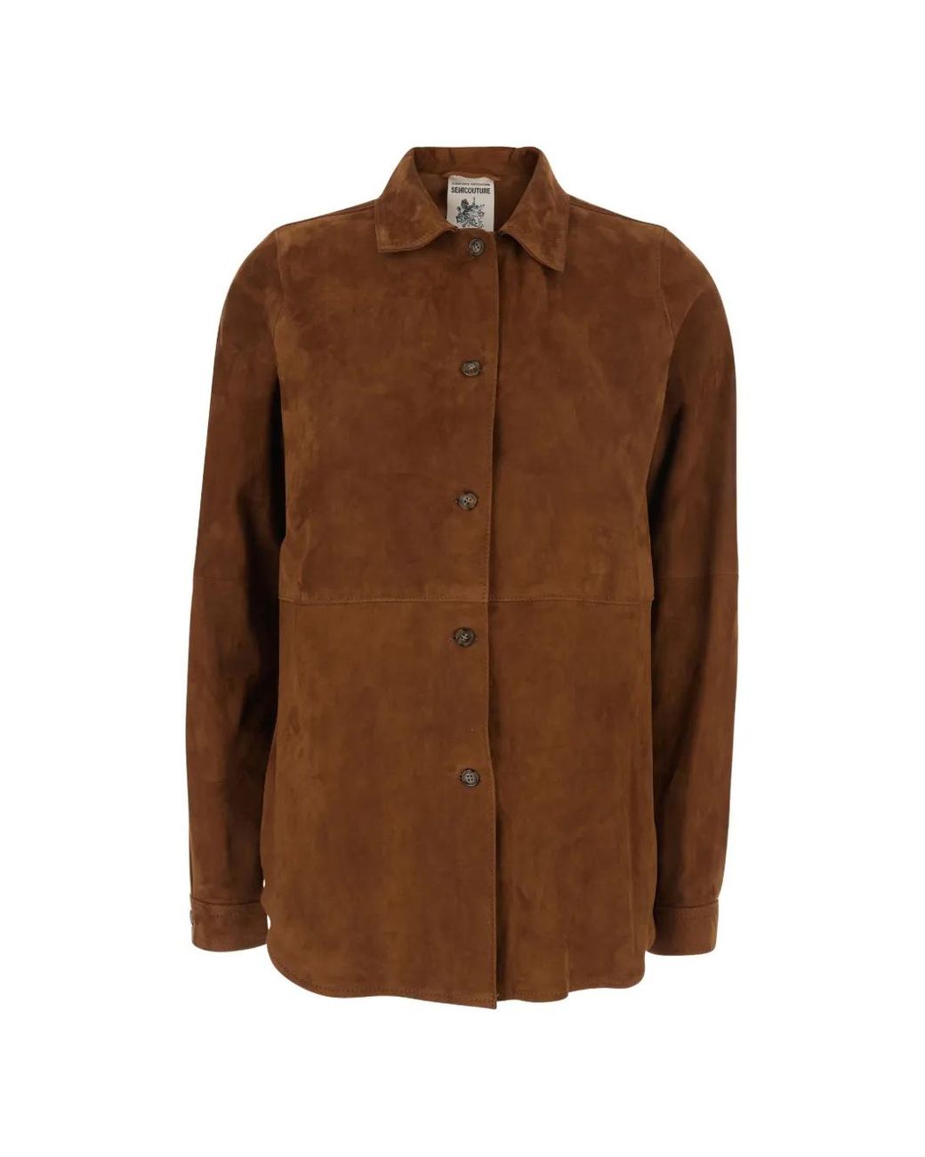 Brown suede button fastening shirt collar long sleeves Size: 40. Gender: Female. Material:Suede. Color: brown