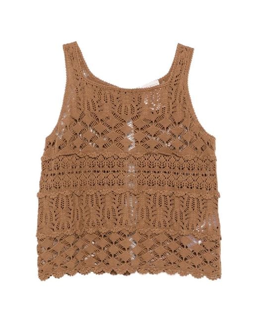 Openwork Sleeveless Top - Natural