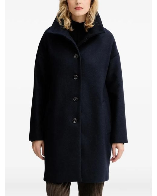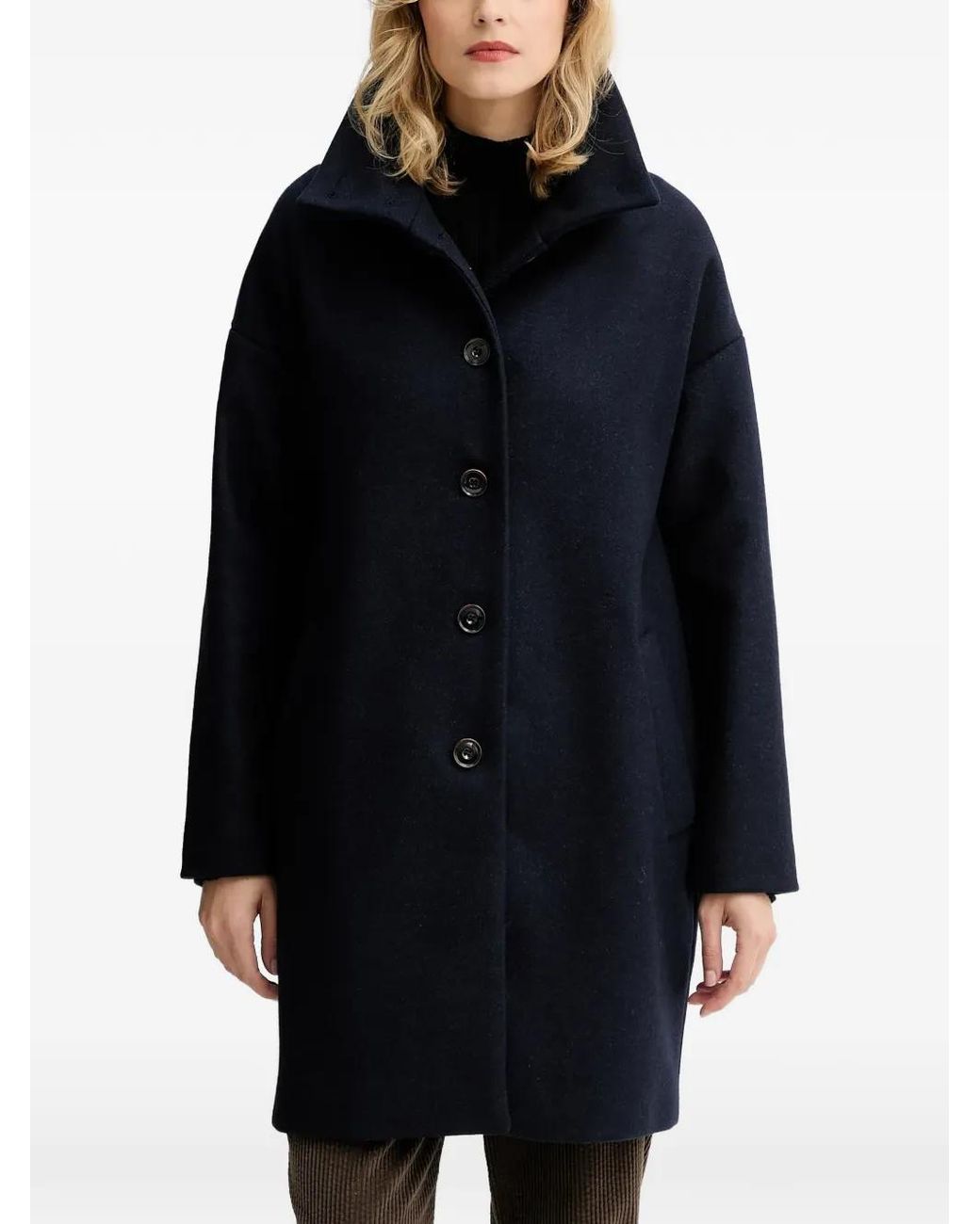 Navy blue front button fastening wide lapel collar long sleeves side slit pockets Size: S. Gender: Female. Material:Polyamide/Other Materials/Wool. Color: blue