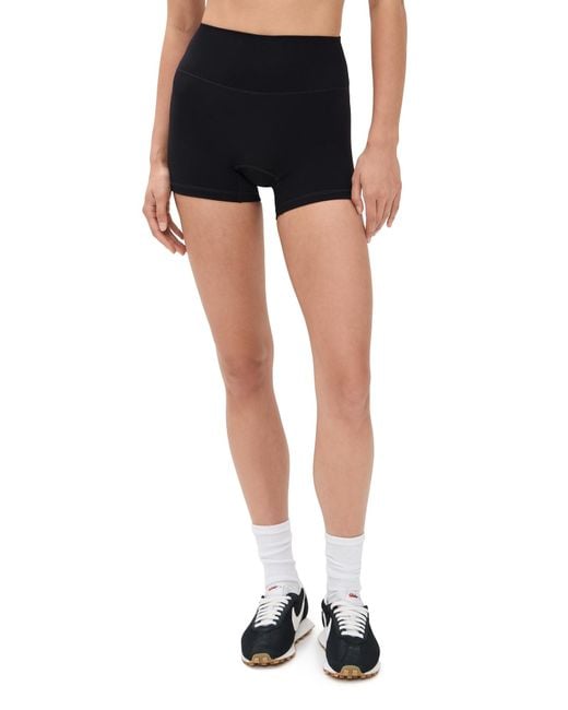 Fabric: Lightweight, super-stretch activewear jersey. Double-layered waistband with no side seams. Logo at back. No closure, pull-on design. Shell: 76% nylon/24% spandex. Wash cold. Imported, China. Measurements: Measurements from size S Rise: 7.5in / 19cm Inseam: 4.75in / 12cm Color: black