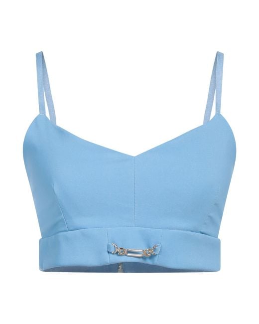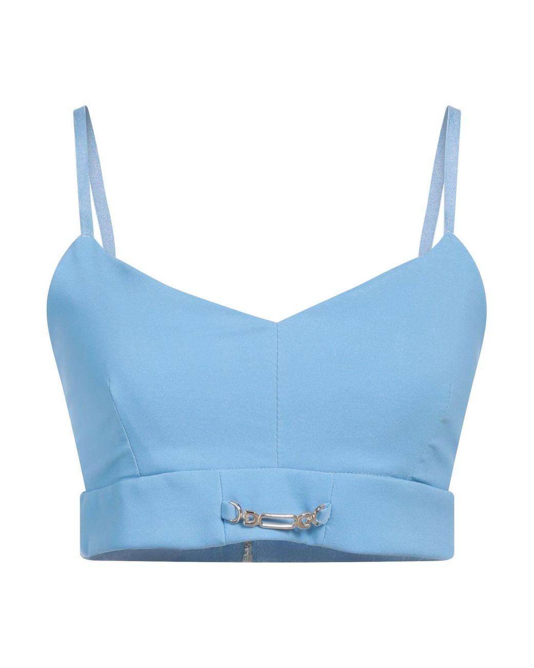 Crop top, woven, stretchy fabric, solid color, embellished, deep neckline, sleeveless, zipper fastening, machine wash or dry clean, do not bleach, do not tumble dry , Color: Light blue , Size: S