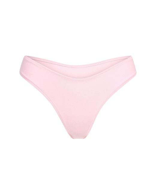 Featuring a dipped front and high cut fit, this flattering throwback thong underwear style is updated in a stretchy cotton material for comfort. | SKIMS Dipped Thong | Halite | Pink | Cotton Jersey | 2XL | 2X-Large | Women's Color: pink