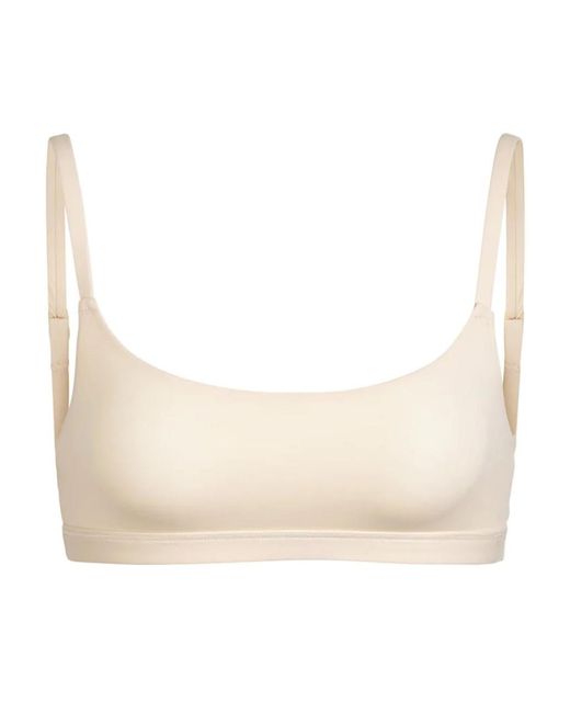 Style Notes With its buttery-soft fabric and flattering fit, this stretchy pullover bralette molds to and supports your bust while feeling light and comfortable. The second-skin design prevents digging and ensures a smooth look under clothing. Features a scoop neck and adjustable shoulder straps. Info & Care Skims stretch-jersey bralette Part of the Fits Everybody collection Adjustable straps, shelf-bralette style, encased elastic underbust seam Pullover style 76% polyamide, 24% elastane Machine wash cold Color: natural
