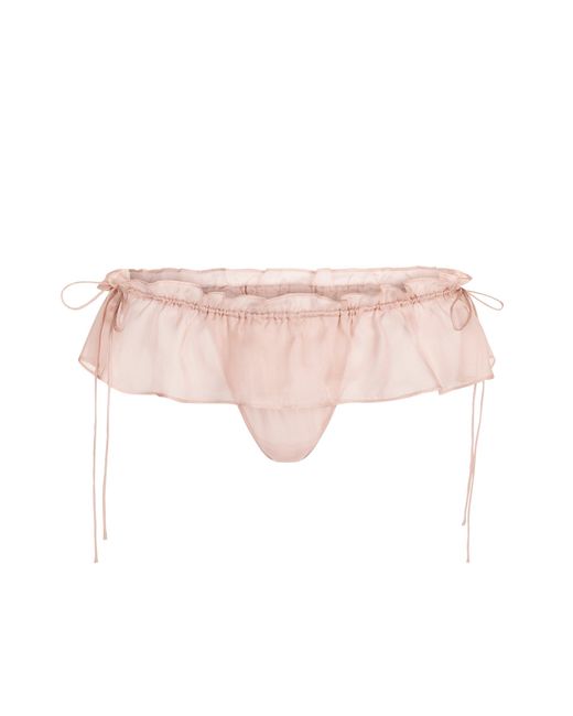 Heat up your late night look. This low-rise, sheer thong is made in our 100% silk chiffon for a sultry addition to your top drawer. Features romantic ruffle details at the waist, thin adjustable side ties, and a 100% cotton gusset. Fits true to size. | SKIMS Tie Side Thong | Light Fawn | Red | Skims Romance | 2XS | 2X-Small | Women's Color: pink