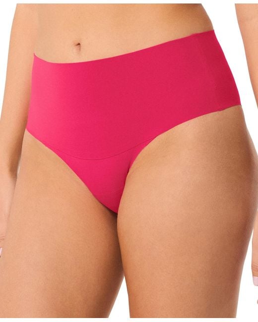 Crafted to be undetectable under clothing, these Spanx Tanga underwear panties feature a seamless construction. The lightweight, high-stretch fabric provides a smooth look with a no-vpl design for a confident feel. Shell: 77% nylon, 23% elastane; gusset: 100% cotton. Color: pink
