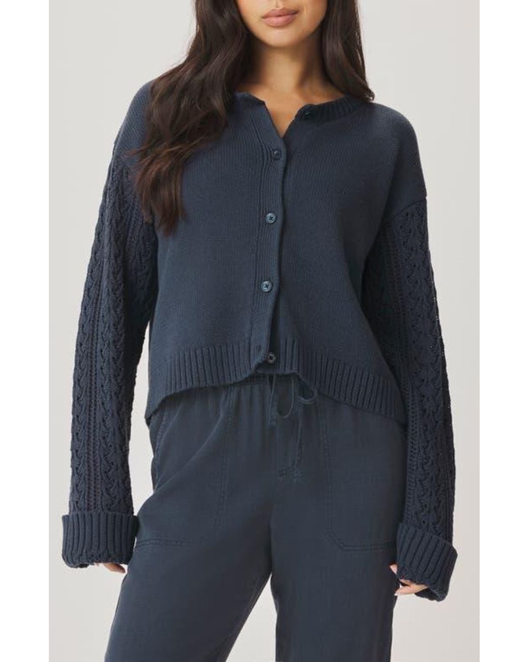 Women's Blue Gracie Cable Stitch Sleeve Cardigan