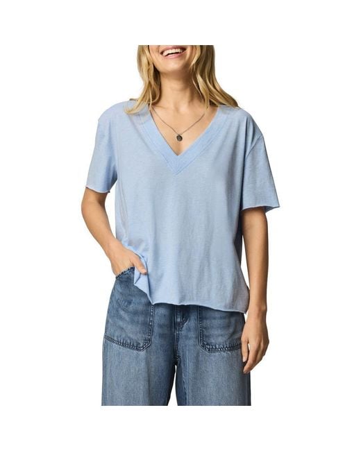 Posie Scoop Neck Ribbed T-Shirt - Blue