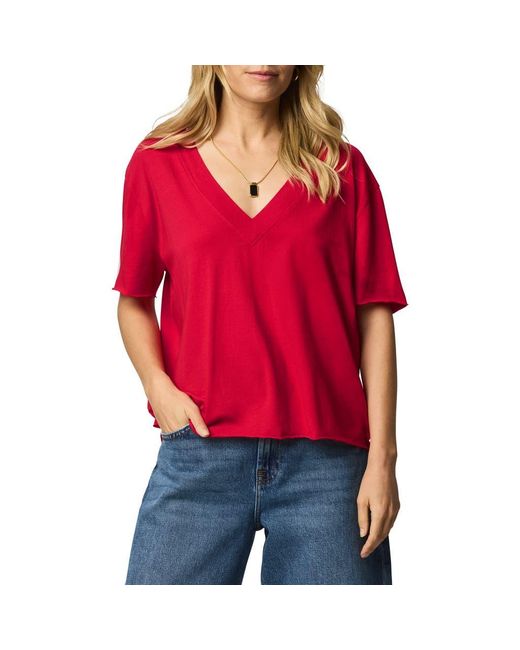 An essential for layering or wearing solo, this relaxed-fit T-shirt has a not-too-low V-neck and a breathable cotton-and-modal knit. Color: red