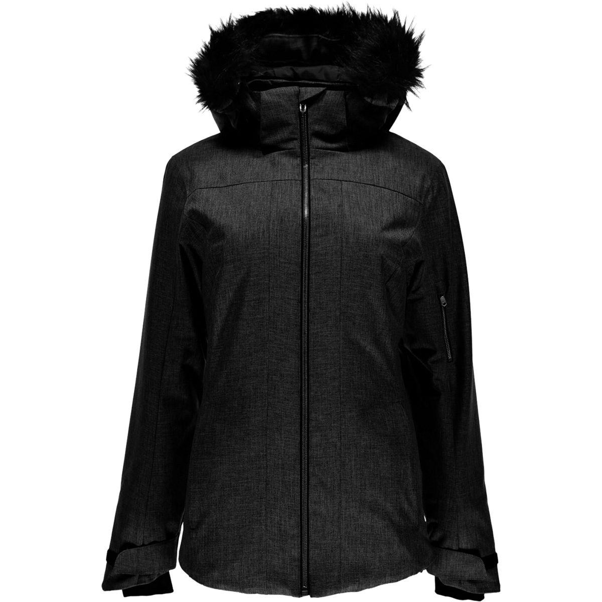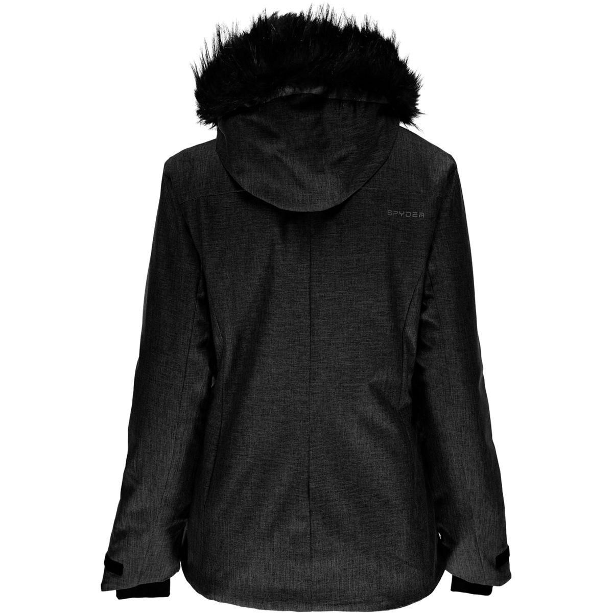 Go to BackcountryYou hear it, you know you do. The howling wind and falling snow are begging you to come play outside, and with the Spyder Entice 1.0 Jacket, you can. This stylish and protective jacket comes equipped with thick insulation for the biting cold, a defensive shell that's waterproof for storm days yet breathable when you're working hard, and a faux fur hood that you can remove when the sun pops out. The adjustable cuffs and drawcord hem can be cinched to keep the snow out and a zippered arm pocket is the perfect place to stash your ski pass. Don't worry, the Entice is more than just function, it features all the style you've come to expect from Spyder, so go ahead and brave a snowstorm or two when you're craving a fancy night out with your friends. A flattering ski jacket for the slopes or around town. Waterproof, breathable membrane keeps the winter weather at bay. Synthetic insulation will still keep you warm if snow soaks in. Seal out the chill with adjustable hood, hem, and cuffs. Pockets for snacks, music, and your resort RFID card. Regular fit lets you layer up on colder days. Material: [membrane/laminate] HydroWEB (2-layer), [shell] 100% polyester, [lining] 100% polyester, [insulation] 100% polyester. Insulation: ThermaWeb (100g synthetic). Waterproof Rating: 10000mm. Seams: critical seams sealed. Fit: regular. Length: hip. Hood: removable. Pockets: 2 hand warmer, 1 sleeve. Recommended Use: all-mountain skiing, all-mountain snowboarding, casual. Manufacturer Warranty: lifetime. Fur Information: faux fur ruff. Color: black