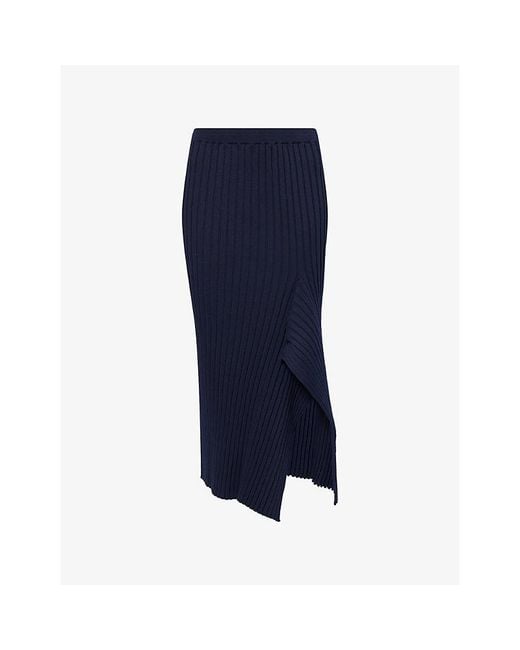 - Asymmetric Ribbed Cotton Midi Skirt