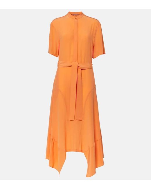 Women's Orange Iconic Silk Crepe De Chine Midi Dress