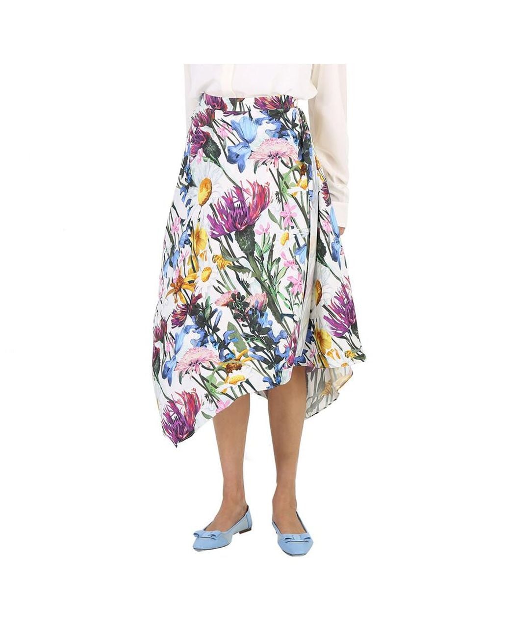 - Ladies Asymmetric Floral Print Midi Skirt
