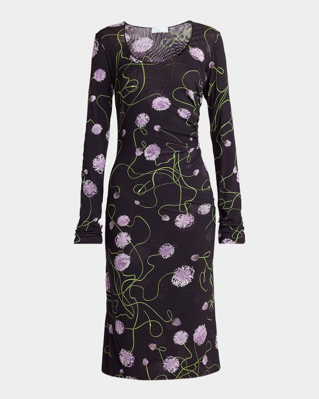 - Twisted Flower-Print Ruched Mesh Long-Sleeve Dress