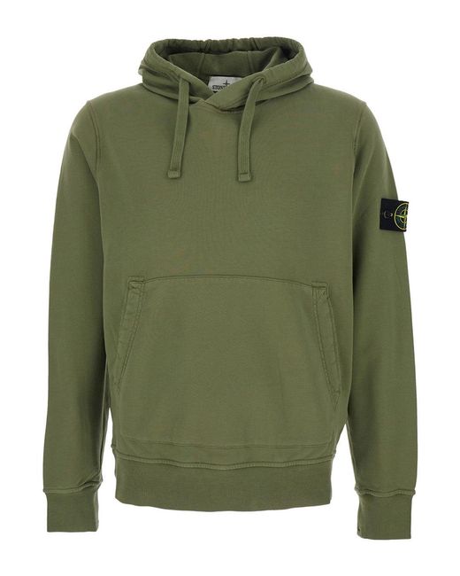 Men's Green Hoodie With Drawstring Hood And Logo Patch On The Sleeve