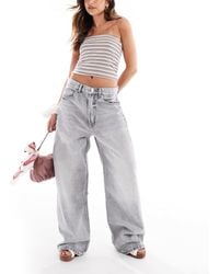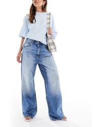 Go to ASOSJeans by Stradivarius Baggy fit Low rise Belt loops Concealed fly Five pockets Branded patch to reverse. Cotton. Color: blue