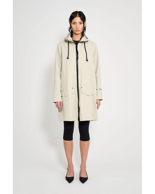 Meet Mosebacke 2.0. Based on our classic style Mosebacke, this version of the A-lined raincoat for women boasts of all the features that make the original an essential closet staple, while incorporating new and improved features based on customer feedback. Expertly made in light and airy waterproof fabric and tailored with triple-welded seams to keep any moisture from seeping through, the new features include patch pockets with flaps to keep your valuables dry and safe as well as a capped hood for clear vision and perfect hair, even in less than perfect weather. Color: natural
