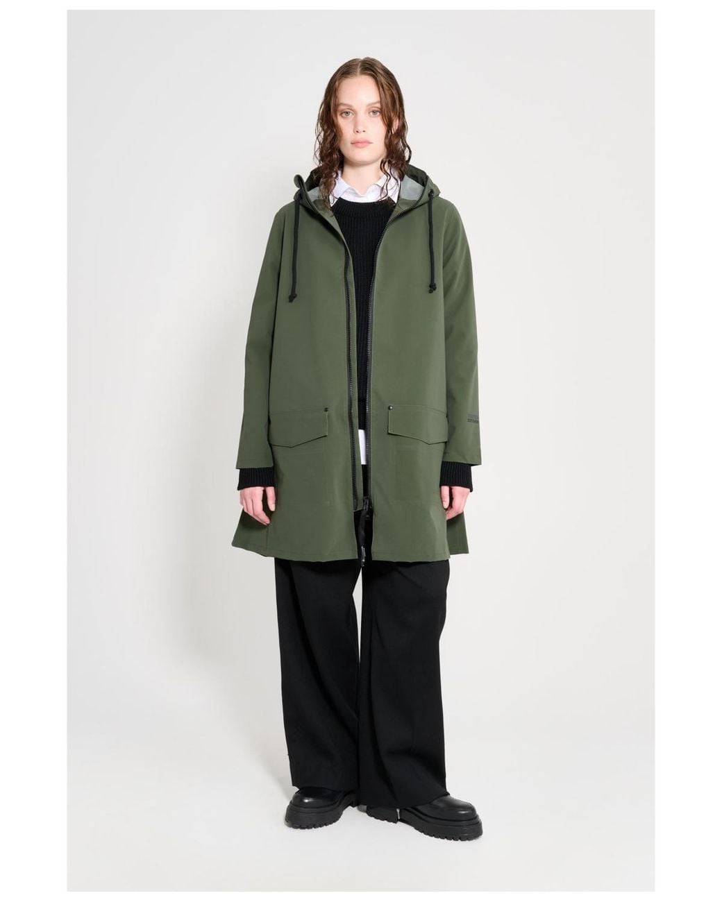 Meet Mosebacke 2.0. Based on our classic A-lined Mosebacke, this women s raincoat keeps the original s essential features while adding improvements from customer feedback. Expertly made in light and airy waterproof fabric and tailored with triple-welded seams to keep any moisture from seeping through, the new features include patch pockets with flaps to keep your valuables dry and safe as well as a capped hood for clear vision and perfect hair, even in less than perfect weather. Coating: 100% Pvc Rubberized Coating, Membrane: 100% Polyester. Color: green