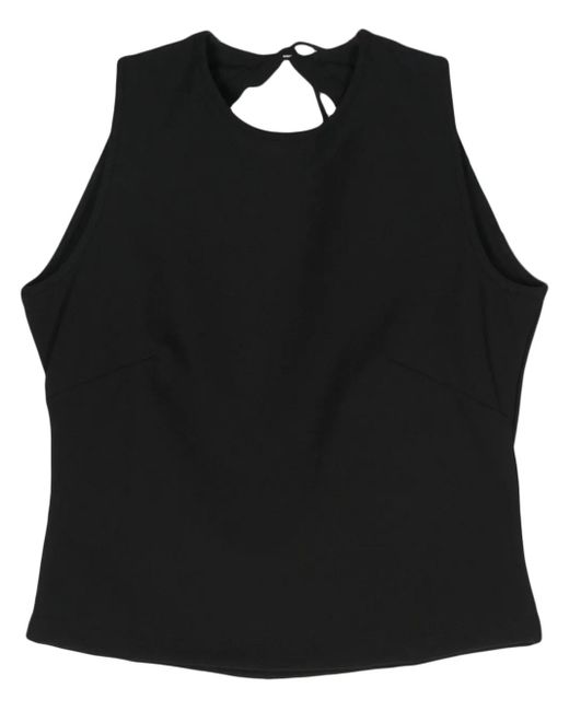Black virgin wool blend round neck sleeveless open back straight hem adjustable strap to the rear Size: S. Gender: Female. Material:Polyester/Virgin Wool/Elastane. Color: black
