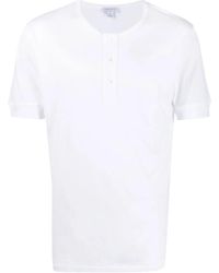 Go to FARFETCHEcru cotton waffle effect front button placket crew neck long sleeves ribbed cuffs straight hem Size: L. Gender: Male. Material:Cotton. Color: white