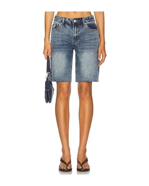 Superdown Teresa Short in Blue. - size 23 (also in 24, 25, 26, 27, 28) superdown Teresa Short in Blue. - size 23 (also in 24, 25, 26, 27, 28) 100% cotton. Machine wash cold. Zip fly and button closure. 5-pocket design. Midweight rigid denim fabric with intentional fading and raw-cut hem. Shorts measure approx 18 in length. SPDW-WF267. SDF267 S25. superdown is a contemporary label offering on-demand, on-trend, on-social apparel. Always on the pulse of the latest styles, superdown is the go-to for aspiring, trendy, fashion-loving babes who are #superdown for anything. Color: blue