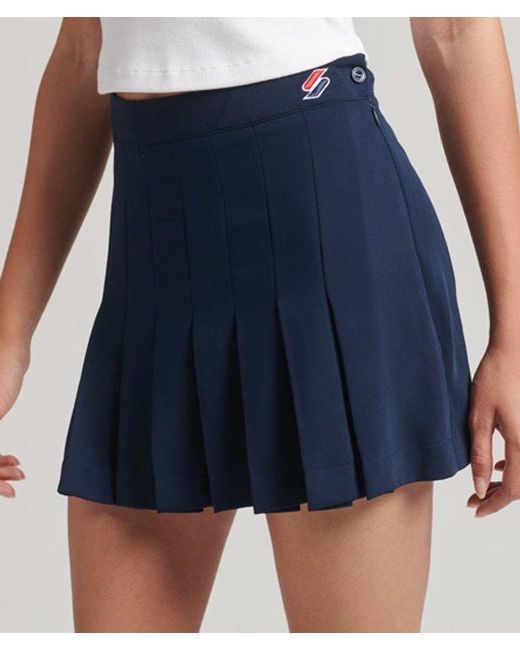 Knock it out the park in the Code Essential Tennis Skirt. This classic design is an easy piece to pair with a vest top, ready to wrap up your sporty style. Slim fit - designed to fit closer to the body for a more tailored look Branded waistband Zip and button side fastening Pleated design. Color: blue