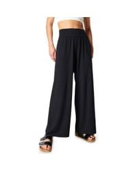 Sweaty Betty Women's Black Stretch Linen-blend Wide Leg Pant
