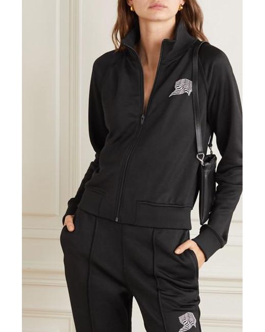 Alexanderwang. T's track jacket is the perfect lightweight layer to wear on casual days. Especially with the matching pants. Cut from soft French terry and printed with the label's logo, it's designed for a loose fit and finished with a ribbed hem and cuffs. Color: black