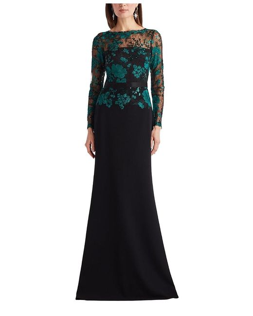 Women's Black Beacon Belted Embroidered Illusion Gown
