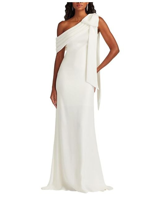 Women's White Cassia Bow-Shoulder Crepe Gown